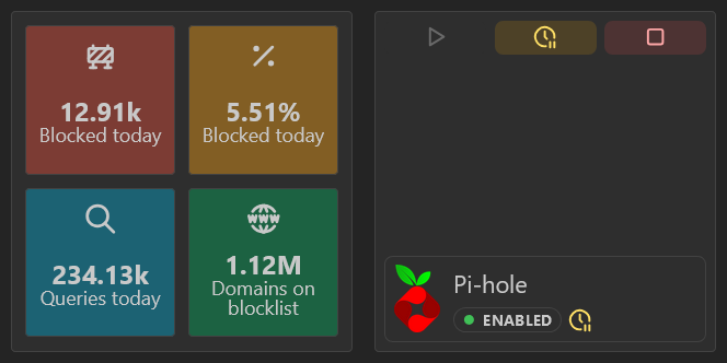If you're running a PiHole or AdGuard Home instance, you might want to display statistics on your dashboard or control them. This widget enables you to integrate crucial data on your dashboard and control your instances directly from Homarr.
